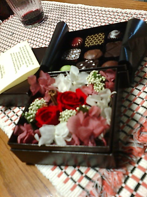 なんと二段構えでまずは素敵なお花、二段目にチョコレート!