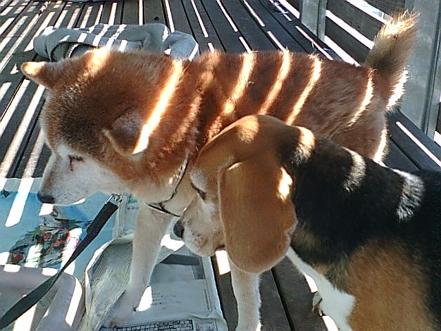 うちの母のとこのベランダにいる二匹も陽射しが差し込んで