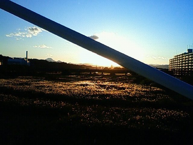 さて、こちらは台風の日の夕方、多摩川の洲のところに広がる