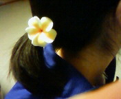かわいいお花の髪留めをくださったので、気分は南国娘。