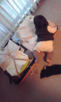 引っ張り出したり、スーツケースの上に乗ったり。