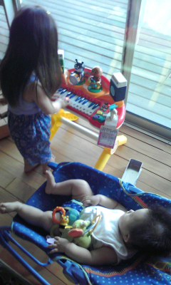 今日は妹一人の為に演奏会です。お互い楽しそう!