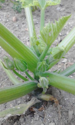 ただいまズッキーニの花がちょっぴり出てきた気配。